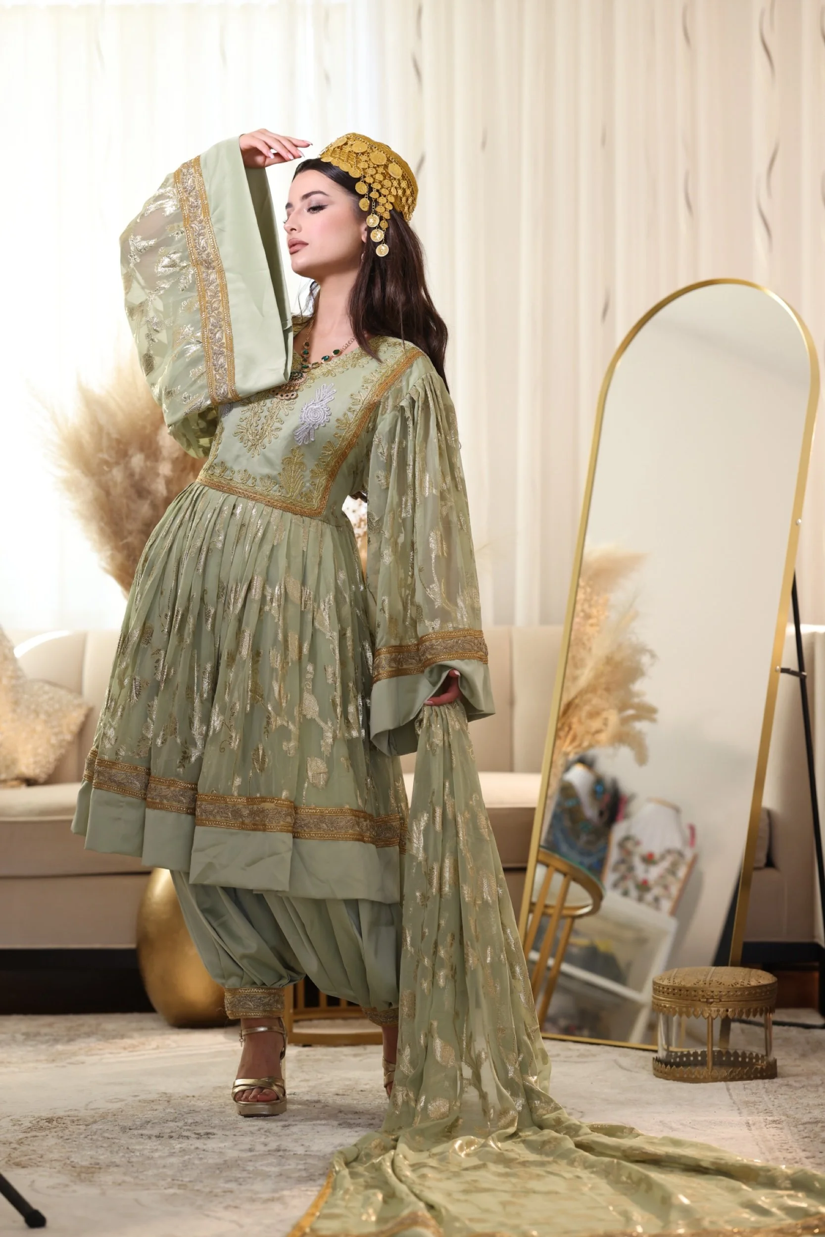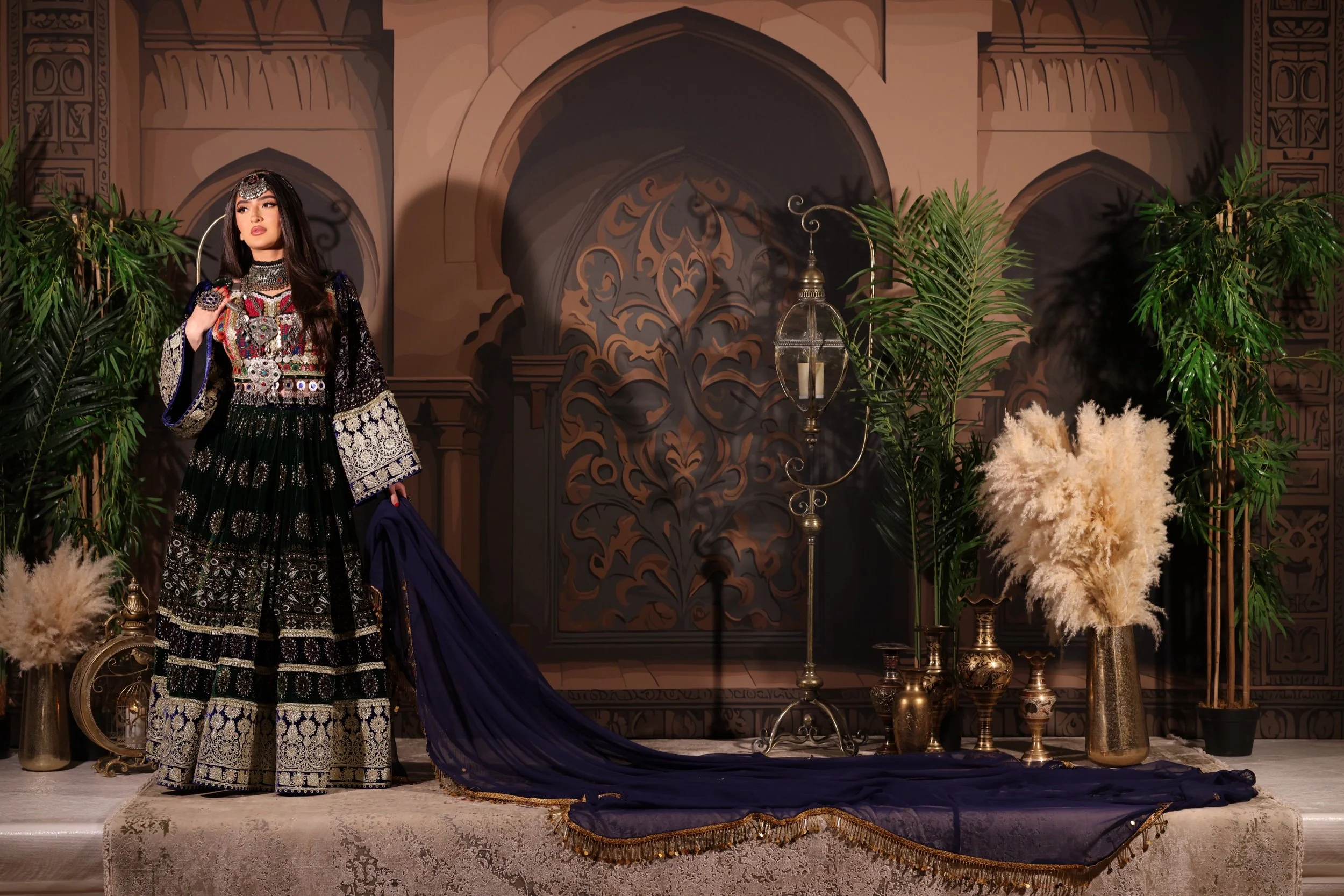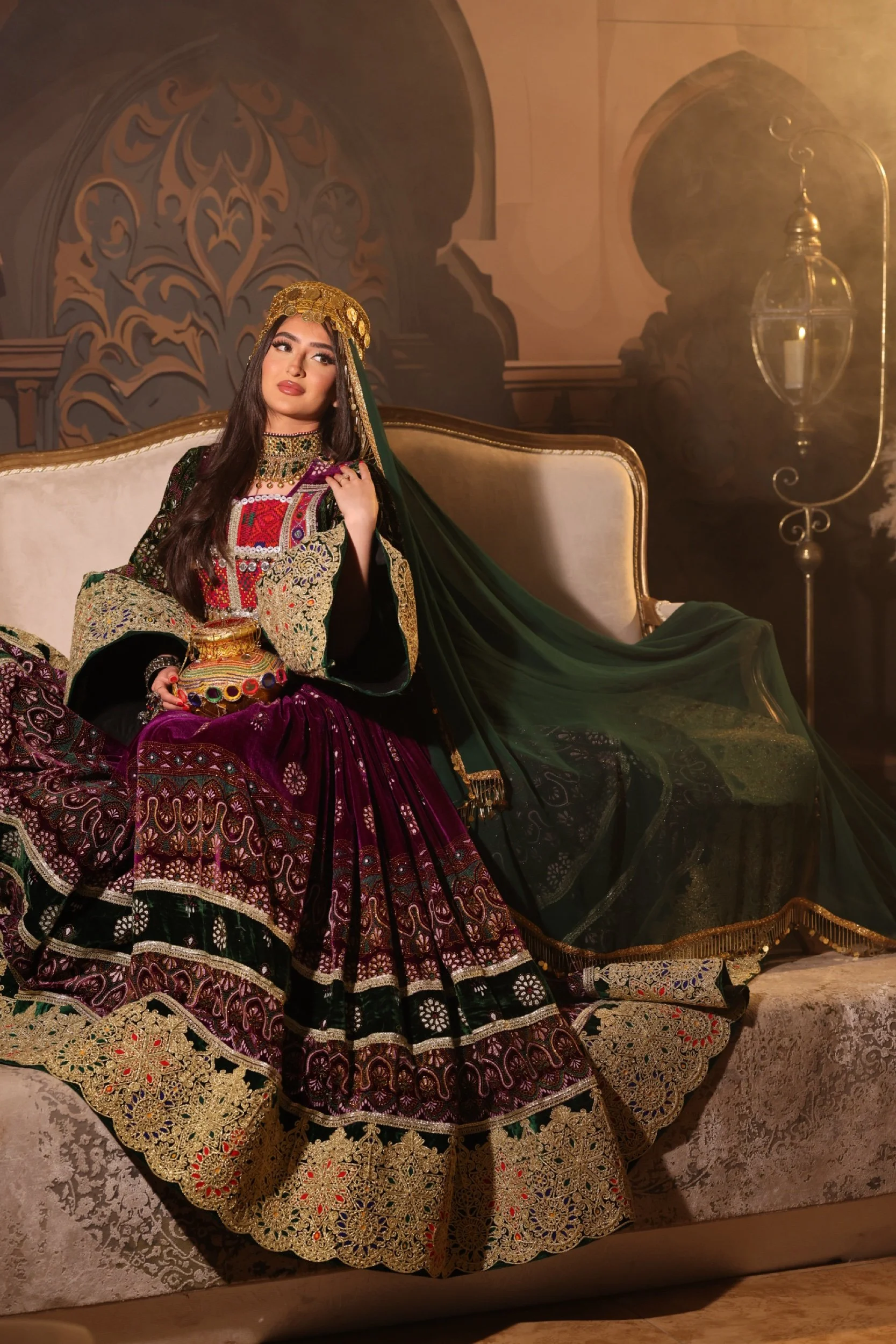 Layered Maxi Dress. Comes with a scarf and is one size with a zip and belt attached.